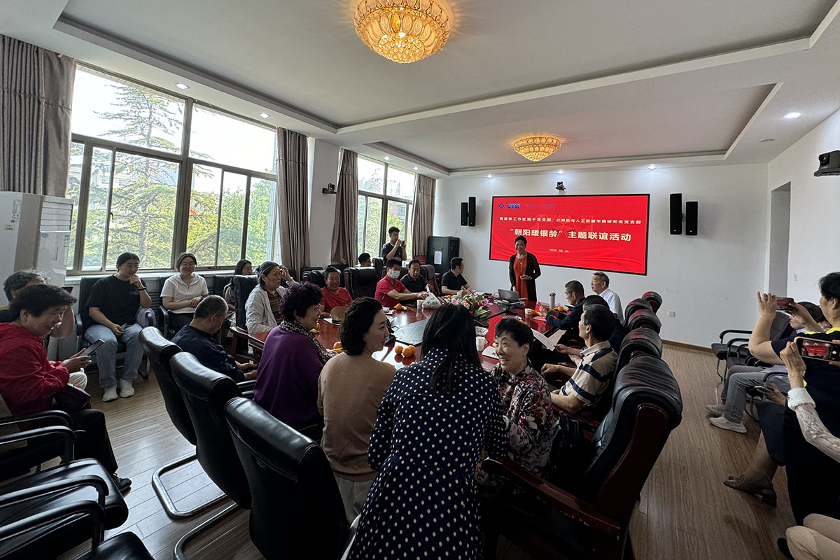 为倡导全社会尊老助老的良好氛围,充分展现青年学子“以我所学,回报社会”的先锋模范意识和志愿服务精神,5月26日,学院研究生党支部联合离退休工作处第十党支部共同开展“朝阳暖银龄”主题活动。一场跨越代际的温情互动,让智能科技与夕阳风采碰撞出别样的温暖火花。离退休工作处处长李玉成,计算机与人工智能学院领导班子,离退休工作处第十党支部近20名离退休党员参加活动。活动由第十党支部书记孙青主持。