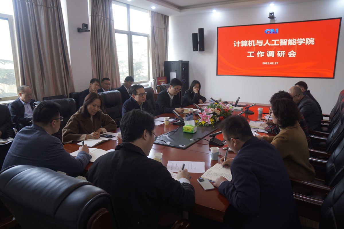 在听取汇报后,洪俊杰对学院40多年来的快速发展和近年来在教育教学、人才培养、赋能财经学科发展等方面做出的积极贡献表示充分肯定。针对学院面临的博士点申报工作,洪俊杰强调,全面提升理工学科的建设水平,是全面落实财经类专业教育改革,实现弯道超车的重要引擎,计算机科学与技术博士点的申报事关学校发展大局,一定要提高政治站位,把申报工作放在财经特色名校建设的战略高度主动谋划、尽早启动、扎实推进。洪俊杰讲了七个方面的指导意见:一是要满怀信心,教育强国建设给研究生教育带来了良好发展机遇,要充分把握机会,顺势而为,全力争取申报成功;二是要正视差距,尽快按照申报材料的指标体系查漏补缺、补齐短板,不等不靠,联合院内外各方面人才建立工作专班,尽快行动起来;三是要尽快确定博士点申报名称,结合学校特色和优势,充分考虑近几年博士点设立情况,组织专家充分论证,凝练有比较竞争力的一级、二级博士点名称和方向;四是要摸清底数,强优势,补短缺,整合管科、统数、区块链实验室等相关资源,尽快补足补齐;五是要抓好责任落实,坚持全院一盘棋,层层分解任务,责任到人,迅速进入战时状态;六是做好宣传,通过学术讲座、学科论证、专业研讨、重要会议等方式和机会,做好学科特色的推介宣传,扩大社会影响;七是要凝聚力量,通过积极向上的领导班子带动,文化和制度建设,营造全院干事创业的良好氛围,充分调动全院师生的主观能动性,共同参与学院建设和发展,全力推进高质量发展。