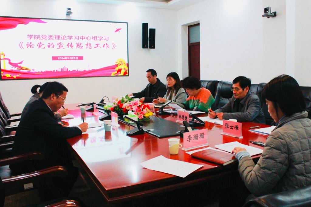 于洪良对本次学习情况做点评,认为学院党委理论学习中心组学习高度重视,主题明确,程序规范,研讨充分,达到了预期效果。他指出,党委理论学习中心组学习的目的在于促进工作、提升思想和以学促用。宣传思想文化工作关乎学院的办学环境和教学成效,要在学思践悟上下功夫,把学习宣传贯彻《论党的宣传思想工作》作为一项重要政治任务,与学院特色专业建设紧密结合,立足新时代大学生特点和需求,以培养新时代社会主义合格建设者和接班人为宗旨,深挖深耕高质量办学成就,进一步将学习成果转化为实际行动。他强调,抓好学院党委理论学习中心组学习,一要加强理论学习,厚实理论功底,自觉用新时代党的创新理论观察新形势、研究新情况、解决新问题。二要聚焦学习主题,坚持全面系统学、及时跟进学、联系实际学,真正学出信仰、学出忠诚、学出担当。三要严格制度落实,规范学习形式,创新学习方式方法,丰富学习内容载体,不断增强学习的吸引力和实效性。