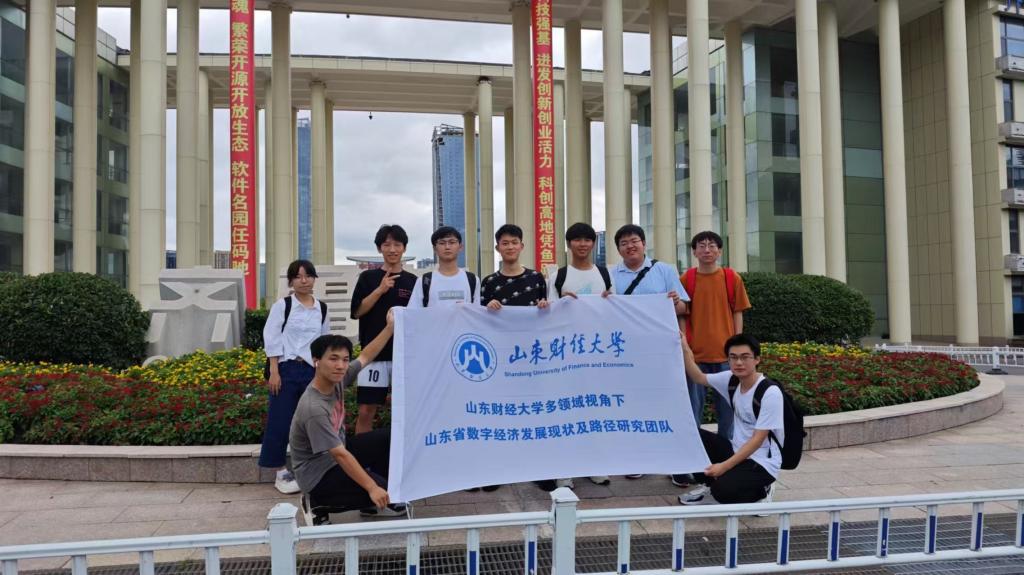 为贯彻落实国家关于数字经济发展的战略部署和相关指导文件要求,助力山东省全力打造数字经济强省,山东财经大学计算机科学与技术专业吕治科为代表的几名同学的呼吁下,成立了由49人组成的多领域视角下山东省数字经济发展现状及路径研究团队。在指导老师韩慧健、李云枝的指导下,团队设立多个分队,分别针对科技智能、快销品、新能源、金融、生物医药等行业,以及以 “济南市一网通办” 为典型代表的数字治理领域展开了全面而深入的实地调研。