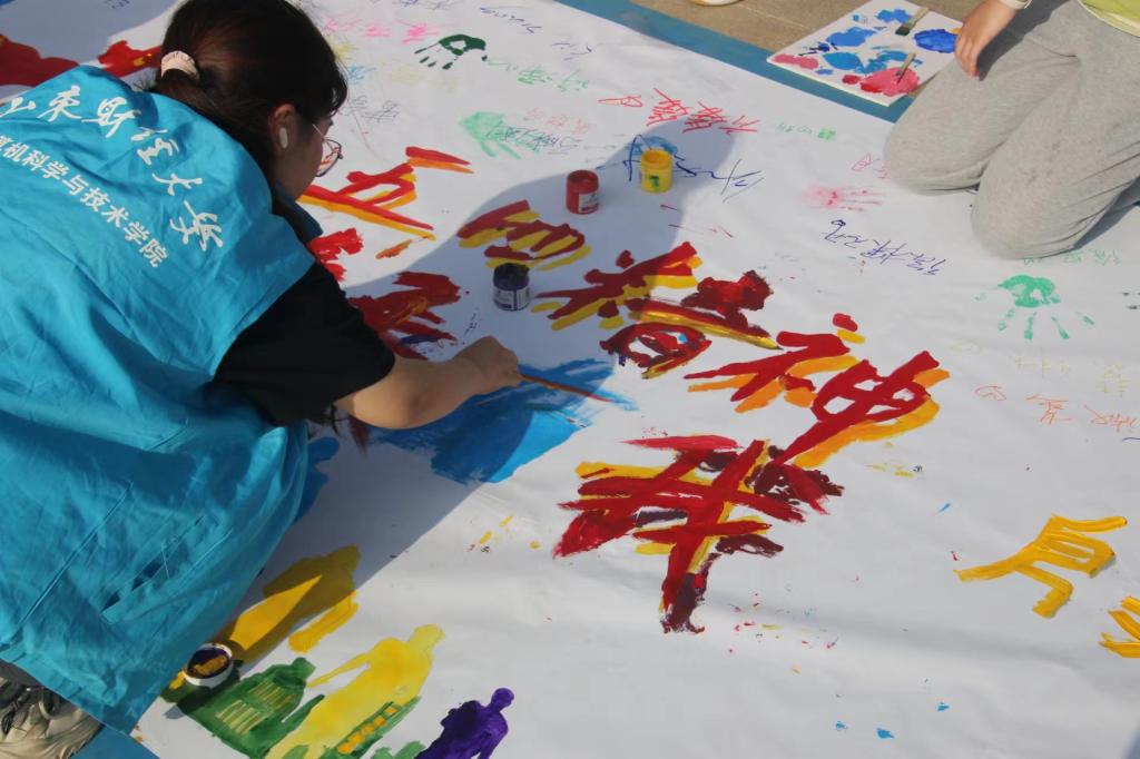 在第75个五四中国青年节来临之际,4月26日,山东财经大学计算机科学与技术学院组织学院师生在燕山校区喷泉广场开展了一场别开生面、色彩纷呈的“绘梦五四共筑青春巨画”活动。