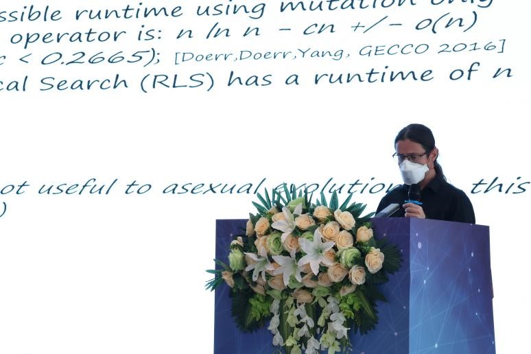 南方科技大学Prof. Pietro S. Oliveto发表了题为“Computational Complexity Analysis of Sexual Evolution for the Design of Better General Purpose Algorithms for AI“的主旨报告。作为现代人工智能和机器学习技术核心的大量通用优化算法都受到了达尔文进化模型的启发,在本报告中展示了如何通过对此类算法的基础计算复杂性分析来了解它们的行为和性能。