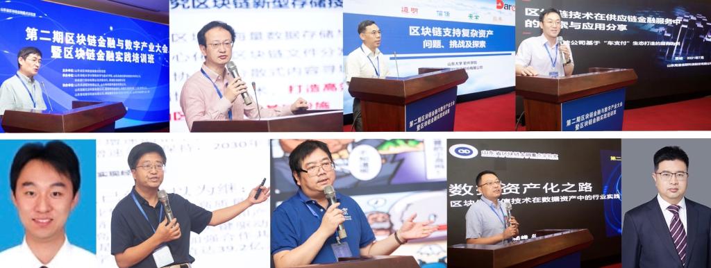 中国计算机学会区块链专委会副主任、浙江省区块链技术研究院院长、浙江大学区块链研究中心常务副主任蔡亮研究员;中国计算机学会数据库专委会委员、山东大学博士生导师、山大地纬软件股份有限公司董事长李庆忠教授;山东高速信联科技股份有限公司总经理 景峻先生;山东省区块链金融重点实验室首席专家、中科院计算所孙毅研究员;赛迪区块链研究院院长、中国电子认证服务产业联盟秘书长刘权院长;江苏省计算机学会常务理事、南京迪链信息科技有限公司总经理王玮先生;山东省区块链金融重点实验室总工程师、山东财经大学计算机科学与技术学院硕士生导师杨峰副教授;北京理工大学教授、中国计算机学会区块链专委会秘书长祝烈煌教授分别作了精彩的报告。八位区块链领域专家聚焦区块链金融,分别以联盟区块链的核心技术及区块链赋能监管,区块链支持复杂资产的问题、挑战及探索,区块链技术在供应链金融服务中的探索与基于“车支付”生态打造的服务应用,构建区块链互联生态的思考与实践,区块链在数字经济中的应用和前景展望,区块链与金融创新,数据资产化之路:以融资租赁与信用通证为例,公有链安全监管与隐蔽通信等为主题,启智生慧,对区块链金融和数字产业发展进行了全面的分析和展望。