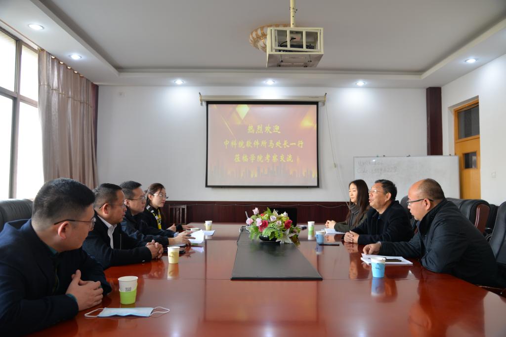 王有志介绍了我校的办学历史、专业设置和学院近年来社会服务工作的进展情况,他以教育部学科评估等级、国家级一流本科专业数量、高招录取分数线等几个关键指标,向客人扼要地介绍了学校发展的现状。王有志表示,学院去年两个专业入选国家一流本科专业建设点,现已获批“电子信息”专业硕士授权点并争取申报“软件工程”博士点,引入高层次育人资源是学院当前学科和专业建设的客观需要。王有志对双方合作提出了几点设想,一是多引进中科院专家来校讲学,扩大学院影响力;二是创新模式、方法,引进专家支援学院博士点建设;三是学院每年获国家自然科学课题3-5项,科研基础较牢固,双方可以进行多种形式的科研合作;四是希望通过同中科院软件研究所的合作带动提升学院学生科创竞赛的层次。