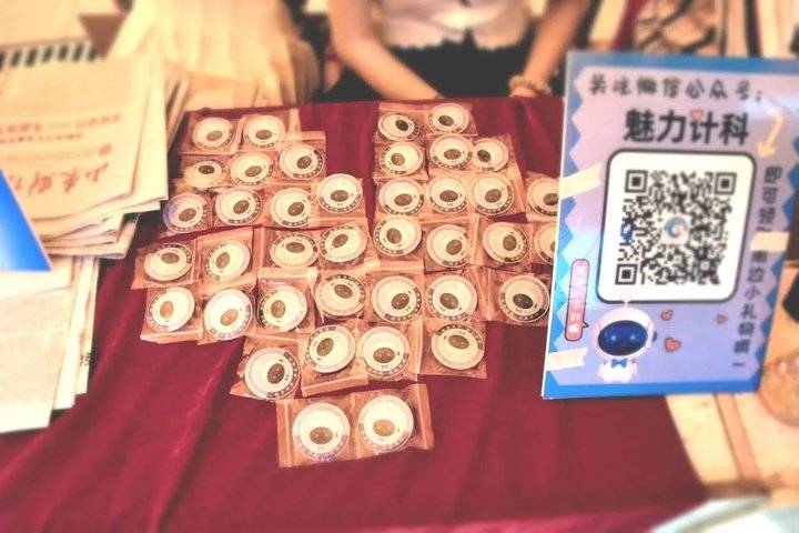 萌新们关注学院“魅力计科”公众号,即可获得关于我的贴纸、卡包和胸章等系列周边哦~