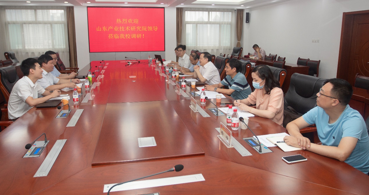 赵友春对刘院长一行的到来表示欢迎。对省委省政府批准设立山东产业技术研究院,发挥的重要作用和取得的成绩表示祝贺!对研究院大力支持与我校科技合作表示感谢!赵友春重点介绍了省区块链金融重点实验室建设进展情况,及加快研发与成果转化延伸创新链的发展思路,对加快合作筹建“山东数字产业技术研究院”提出了建议,并就下一步密切合作计划进行了磋商。赵友春表示,在山东产业技术研究院大力支持下,依托现有科技创新平台,有信心建设成新型研发机构和成果转化机构。