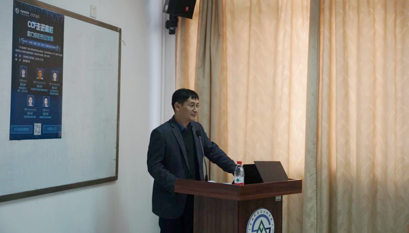 计算机科学与技术学院执行院长韩慧健教授致开幕词。他首先对中国计算机学会表示感谢,介绍了受邀嘉宾并对专家的到来表示热烈欢迎;然后简单介绍了学校和计算机科学与技术学院的基本情况;最后希望CCF专家多来我院交流和指导,加强沟通,促进学院发展。