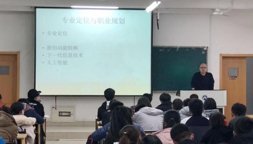 讲座接近尾声时,张云峰与现场同学做互动交流并就同学们所提问题提出了许多对策建议。使其对本专业的定位和人生职业的规划有了更加深入地了解,为合理规划大学生活指明了前进方向。
