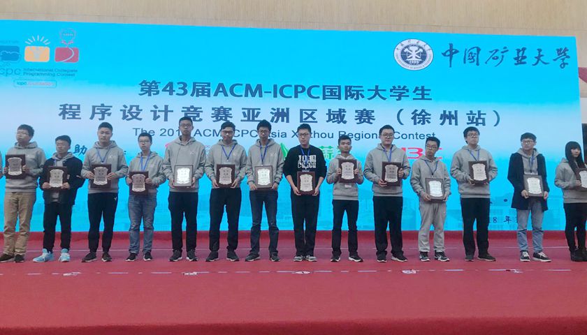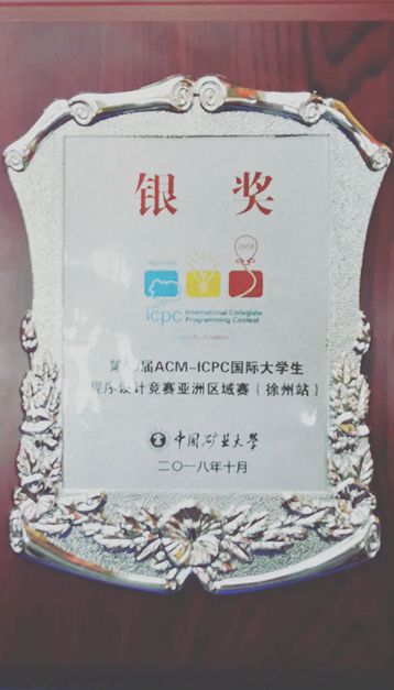 2018年10月28日,第四十三届ACM/ICPC(国际大学生程序设计竞赛)亚洲区域赛在中国矿业大学南湖体育馆拉开帷幕。我院参赛队伍“Atiyah's Proof of Riemann Hypothesis isn't Correct”(金正旭、冯嘉俊、房乐鑫)参加了本次大赛,获得银牌。