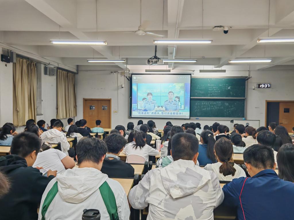 活动于晚上7点半时准时开始,学生们齐聚1130教室,通过大屏幕实时收看山东公安官方平台播出的节目。直播内容聚焦当前大学生易遇到的诈骗类型,结合真实案例进行剖析,强调防范的重要性。山东公安反诈中心专家通过视频讲解,揭示了诈骗分子的常见套路,并提供实用防范建议。
