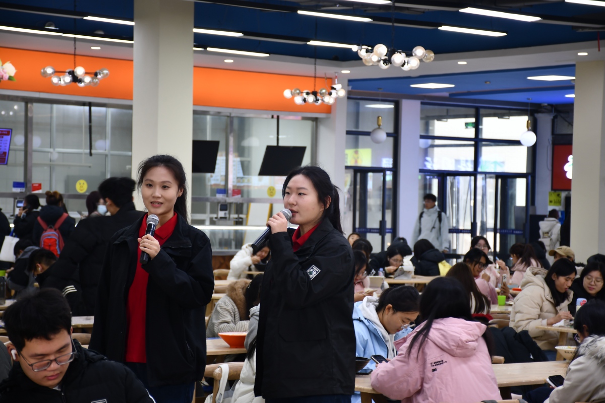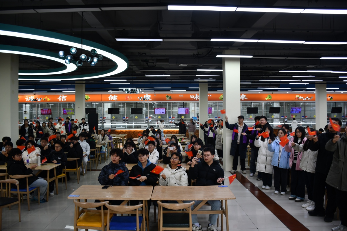 正值午餐时段的学生餐厅里,人群流动,随着《我爱你,中国》悠扬旋律的响起,我院师生手持国旗肃立高歌,原本分散在餐厅各处的参与者有序向中央区域汇聚,迅速形成整齐的合唱方阵。歌声庄重,充满深情,传递出师生对历史的深刻铭记和对和平的共同珍视,充分表达了“勿忘国耻、振兴中华”的坚定信念。活动形式新颖,吸引了大量师生驻足观看,很多同学不由自主地加入合唱队伍,歌声此起彼伏,拍摄灯不停闪烁,现场洋溢起浓厚的爱国主义氛围。