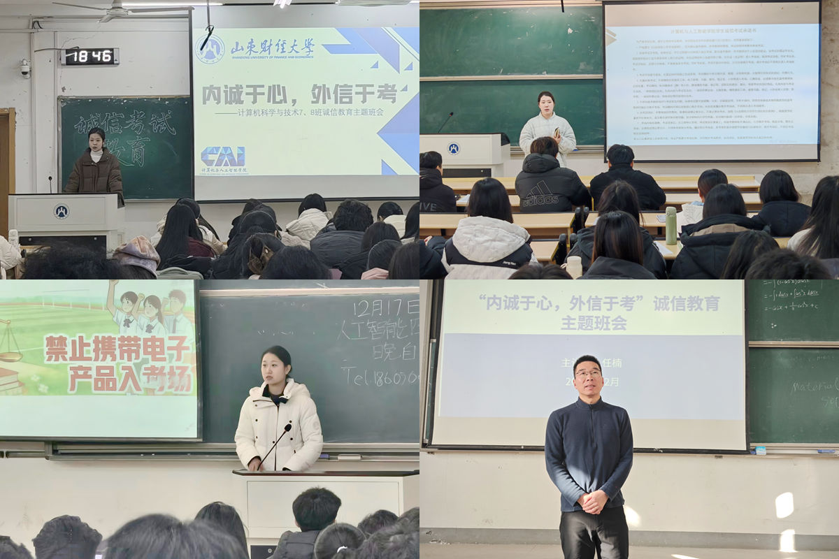 为深入推进学风建设,营造公平公正、诚信有序的考试环境,切实增强学生诚信应考意识,根据学校《关于进一步加强学生诚信考试教育的通知》要求,12月15日至18日,我院集中组织“内诚于心,外信于考”诚信教育主题班会,以多形式、深层次的教育引导,为期末考风考纪建设筑牢思想防线。