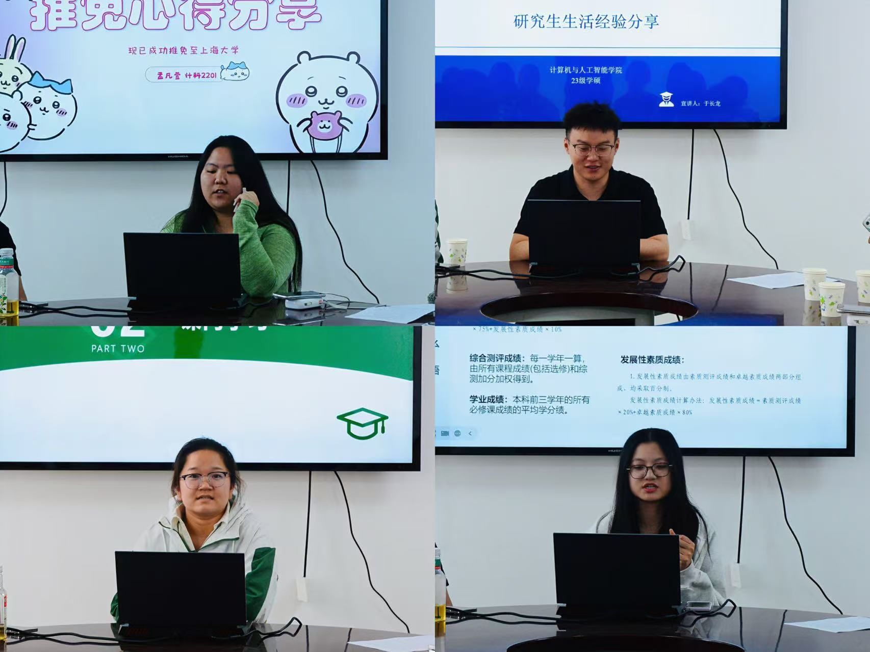 于长龙作为研究生三年级学长,围绕研究生的学习节奏、科研生活和就业选择展开细致讲解,梳理了研一课程选题、研二论文实践、研三毕业升学的全流程规划,介绍了互联网大厂、央国企、考公等多元就业方向。让同学们提前了解到读研的价值与发展路径,更明晰了保研不仅是学历的提升,更是解锁更广阔职业选择的关键钥匙。