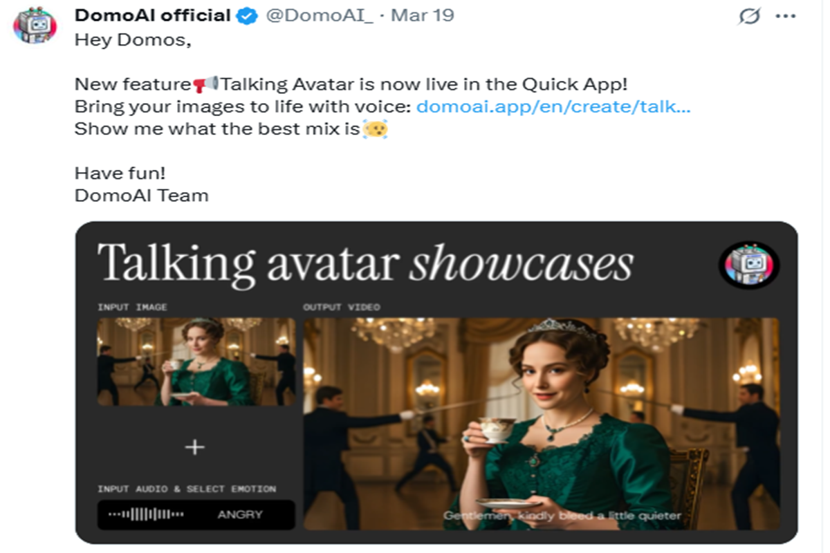 DomoAI推出语音图像生成数字人功能:数字内容创作迎来新突破