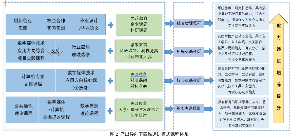 为了培养学生掌握前沿的数字媒体技术并具备解决实际问题的能力,本专业构建了特色鲜明、结构合理、与时俱进的课程体系。该课程体系主要特色如下:
